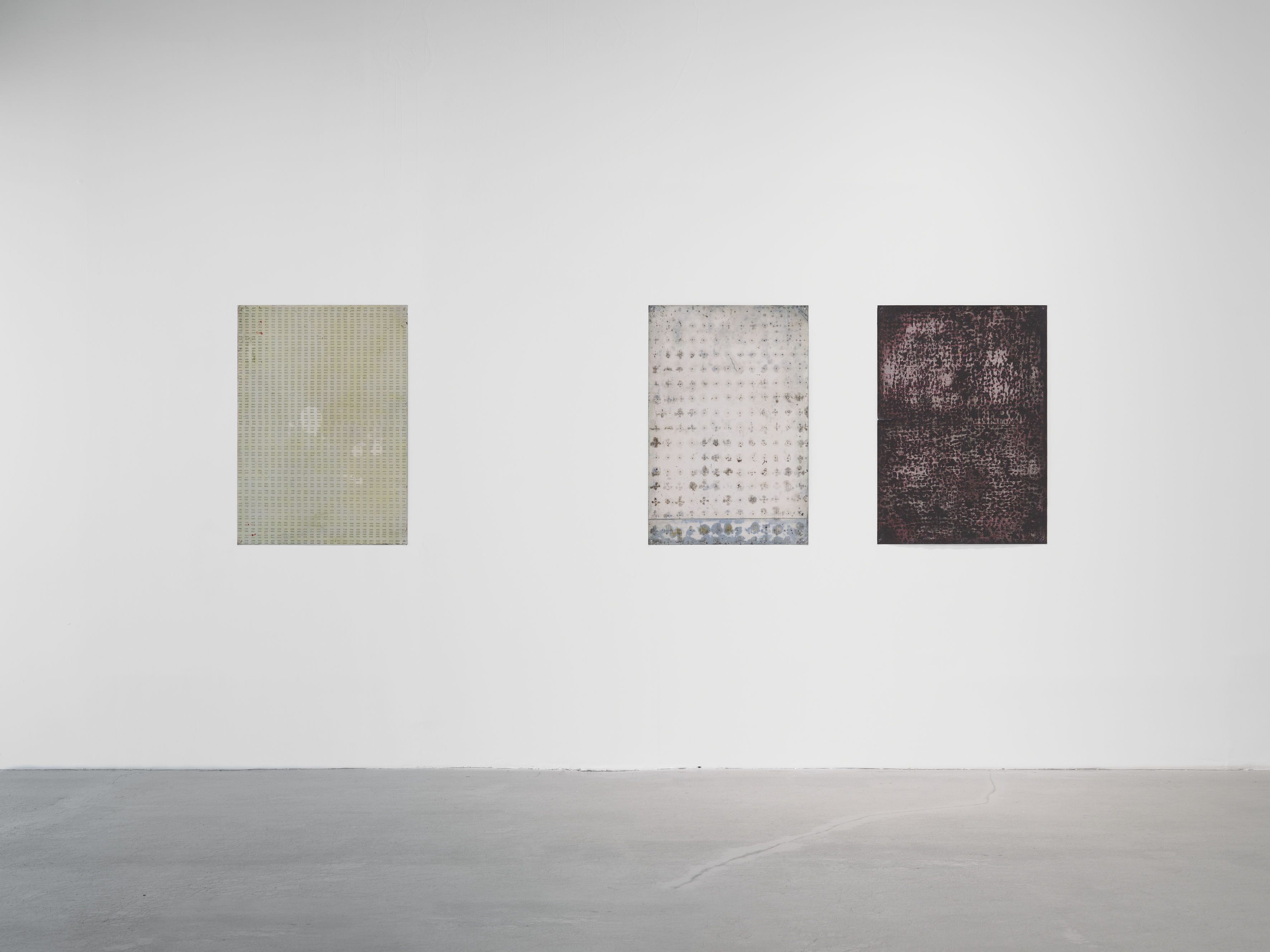 Untitled (odd), 2022, oil on papers, pins. 102 x 72 cm.